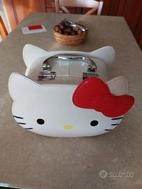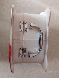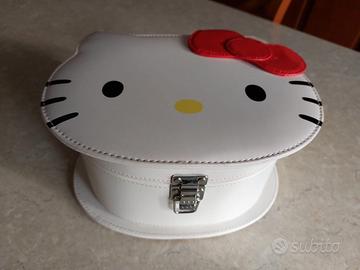 Beautycase di Hello Kitty in pelle, interno scamosciato, mai usato, dimensioni cm 22 X 17 X 13. Leggera sfumatura di rosa nella parte alta.