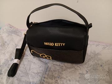 Nuova Borsetta Sanrio Hello Kitty, colore nero con cerniera, adatta per portare con voi portafoglio, documenti, trucchi, chiavi, libri, telefono, tablet e qualsiasi altro oggetto che porti con te quando sei fuori da casa.