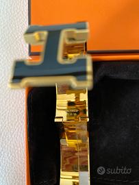 Vendo iconico e originale bracciale Hermes Clic Clac H, in materiale smaltato, placcato oro giallo, praticamente nuovo.
