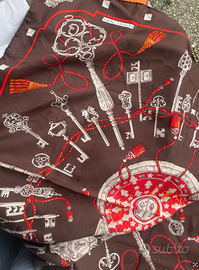 Vendo splendido foulard Hermès Carré 90 cm in twill 100% seta, modello “Les Clés”, colore Brun/Rouge/Taupe (Coloris 38).