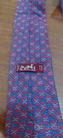 La cravatta mostrata nella regione selezionata è una cravatta Hermès in seta con un motivo a catena Gancini ripetuto, 100% seta