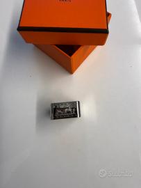 Ferma Carre’ Hermes Bolduc Argentato Nuovo con confezione