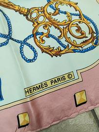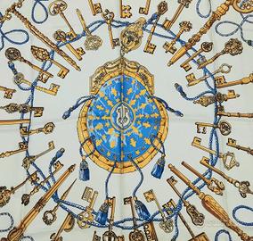 Hermès Paris "Les Cles" foulard donna vintage anni 90 100% seta 100% originale Nuovissimo nessun difetto 90 cm X 90 cm Affrettatevi!!
