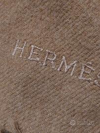 vendo plaid Hermes misure 150 x 130 con qualche usura visibile in foto ce la possibilità di rifilarlo o disfare uno sciarpone grosso 70 cashmire 30 lana