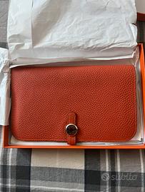 Vendo portafoglio originale Hermes Dogon in pelle Togo color arancio, comprato in boutique Hermes, completo di tutto, fattura...Full set, unico proprietario come nuovo. Un vero affare