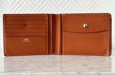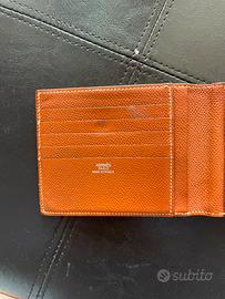 Hermes portafoglio da uomo. Pelle Togo.Usato ( ha i segni del tempo) ma ancora in buono stato. 5 slot per carte, una tasca con automatico che puo contenere altre 2 carte. 2 tasche interne ed una grande, con divisorio per banconote. Misure 12x9