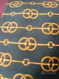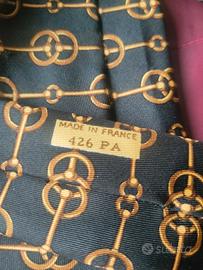 Cravatta Hermes vintage anni 70/80. Alla cravatta manca l'etichetta con la H di quel periodo. Cravatta con fondo nero e disegni color oro.