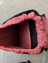 Unico difetto, come si vede in foto, sono i ganci in pelle che non usandolo si sono usurati. Per il resto per perfetto.