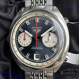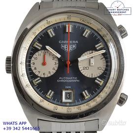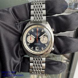 Per conoscere il prezzo e le caratteristiche tecniche dei nostri orologi visita il nostro sito ufficiale: https://lwmitalia.com/it Tutti i nostri orologi vengono verificati e revisionati dal nostro laboratorio specializzato “KeepTime Lab”: https://keeptimelab.com/it/ Heuer Carrera 1153 cronografo acciaio, anno di produzione 1971, ghiera acciaio liscia, vetro plastica bombato, quadrante soleil colore blue con data, movimento meccanico a carica automatica, bracciale Gay Freres acciaio con maglie a perline di riso con chiusura deployante originale Heuer. Orologio Heuer originale in ogni sua parte, revisionato in buone condizioni, segni di usura o graffi poco visibili o visibili, scatola originale TAG Heuer non in buone condizioni, garanzia/dichiarazione di vendita del nostro negozio valida 12 mesi.