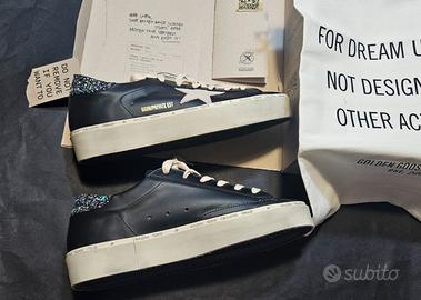Vendo sneakers originali Golden Goose modello Hi-Star da donna numero 40 tutte in pelle nera stella beige con talloncino glitterato. P. Limited edition.