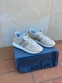 Comodissime scarpe Hogan H86RUN pelle e tela, colore sabbia e oro, misura 36 e 1/2.
