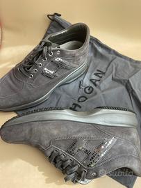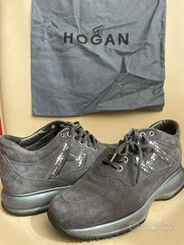 ✨Sneakers Hogan Interactive H Lamina Paillettes - Donna n. 38 Vendo sneakers originali Hogan Interactive H Lamina Paillettes, colore grigio/catrame in camoscio con iconica H laterale impreziosita da paillettes. ‼️Taglia: 38 Condizioni: nuove (vedi foto). 💥Dotazione completa di scatola e dust bag Hogan.