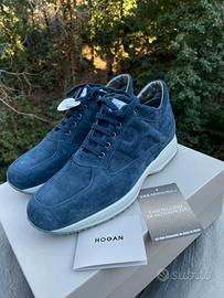 Splendide Hogan Interactive color blu in pelle scamosciata, NUOVE CON ETICHETTA, MAI INDOSSATE per errore nella selezione della taglia.