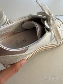 Vendo Hogan donna Maxi H222 Usate ma in buono stato. Come si nota nell’ultima foto c’è una piccola scucitura .