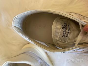 Hogan, modello Interactive, in una raffinata colorazione bianco perlescente con dettagli in tessuto tecnico. Un vero classico che unisce eleganza e comodità, perfetto per elevare qualsiasi outfit, dal look casual da giorno a quello più ricercato per la sera.