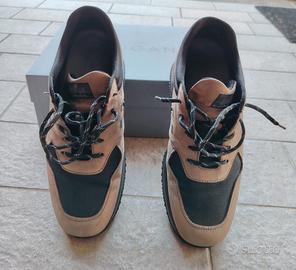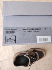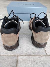 Vendo Hogan Interactive, da uomo, taglia numero 7. modello con combinazione di nabuk/scamosciato marrone e tessuto tecnico nero.condizioni molto buone. Lacci bicolore originali, soletta interna removibile rialzata. La pelle è ben tenuta e la suola presenta pochissimi segni di usura. Scatola originale Hogan inclusa.