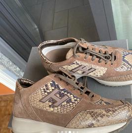 Hogan scarpe pitturate e camoscio marrone modello interactive, taglia 35, marchio originale, usate pochissime volte in ottime condizioni