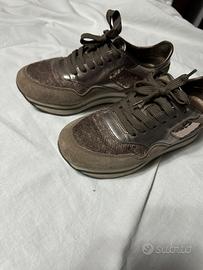 Vendo paio di scarpe hogan platform originali, senza scatola, in camoscio marrone e paillettes, numero 37,5.