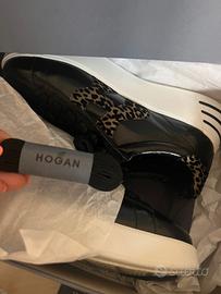 Vendo bellissime HOGAN REBEL nere in vernice lucida con logo in camoscio leopardato ..