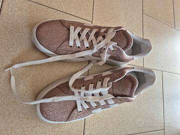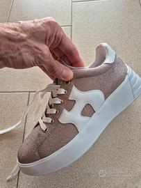 Vendo scarpa Hogan sneakers Rebel donna H562, tessuto shiny effetto glitter, numero 38., pari a nuovo. Non possiedo scatola.