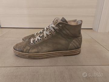Scarpa tipo Converse in pelle colore grigio/verde slavato industrial. Taglia 8 (che corrisponde a una 43)