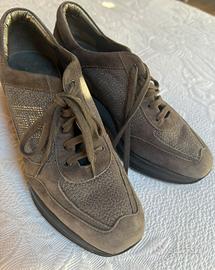 Sneakers hogan in camoscio grigio e logo con brillanti Zeppa 8 cm Misura 37 1/2