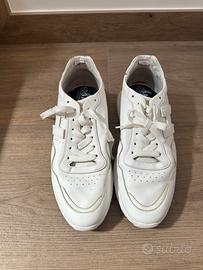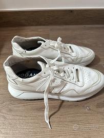 Ciao a tutti! Se state cercando una scarpa che unisca l'eleganza del Made in Italy alla comodità di una sneaker sportiva, dovete dare un'occhiata a queste Hogan numero 43/43.5 • Stile Senza Tempo: Il design total white in pelle è un classico. • Comfort Assoluto: La suola è ultra-leggera e ammortizzata, progettata per chi sta in piedi tutto il giorno ma non vuole rinunciare a un tocco di altezza e slancio. • Qualità Premium: Parliamo di vera pelle, morbida al tatto e resistente, con i dettagli iconici del brand che ne garantiscono l'autenticità e il valore. Condizoni : 8/10 Presso listino 280€ Prezzo trattabile