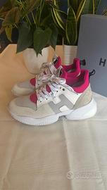 Vendo Sneakers Hogan donna, color avana e fucsia numero 37 e 1/2 con scatola hogan, dust bag da viaggio inclusa e lacci bianchi di ricambio. Prezzo 180€, retail in negozio 390€. Scarpe usate solo un paio di volte. Condizioni pari al nuovo. Preferibilmente consegna a mano su Roma, oppure con spedizione a scelta e a carico e responsabilità dell’acquirente.