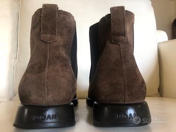 Stivaletti Hogan in camoscio. Elastici laterali. Suola esterna in gomma. Tomaia interna in pelle e tessuto.
