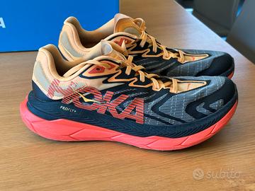 Vendo causa regalo non gradito Scarpe Hoka M Tecton X2 Black Flame 9D taglia 42 2/3 usate solo per quattro escursioni. Sono scarpe tecniche troppo tecniche per il mio livello e per le mie abitudini. Prezzo di listino 220€ Tomaia Matryx Linguetta a soffietto Struttura ProFlyX Piastre in fibra di carbonio Vibram Megagrip con Litebase MetaRocker vicino al collo del piede