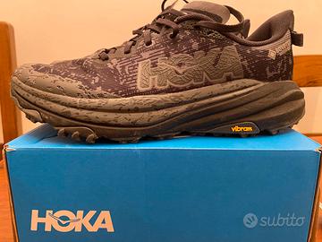 La taglia delle scarpe é un 44, hanno 9 km di prova, sono pari a nuove si vede anche dai tacchetti della suola che non sino usurati, le ho acquistate il 19/02 verificabile dallo scontrino. Le rivendo perche ho sbagliato il modello, sono a pianta larga e io indosso il modello normale nonostante questo ho decisi di fare una prova ma dopo aver fatto una sessione di camminata mi sono accorto di non trovarmi bene con esse. Il modello è molto buono sono in goratex e offrono un oltimo grip su strade sterrata. Le Hoka Speedgoat sono ottime scarpe per chi fa trael running e per chi affronta cammini lunghi e impegnativi, le ho provotate per fare una parte del cammino e sono divetato un amante di questa calzatura. Sono disponibile alla spedizione.