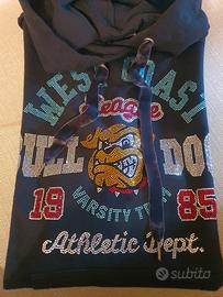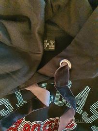 Meraviglioso hoodie dress con stampa college interamente di strass.