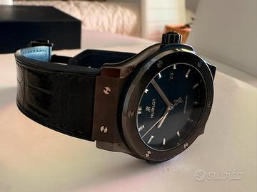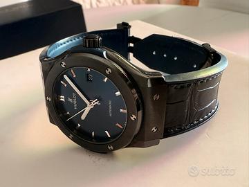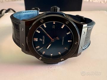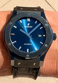 Hublot classic fusion 42mm escluso corona ceramica quadrante blue cinturino pelle piu’ caucciu’ corredato solo di scatola, no garanzia.
