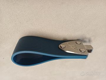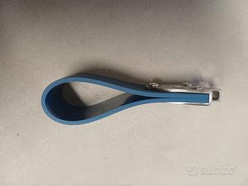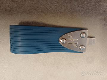 Hublot, keyring Portachiavi in Pelle vegana blu acciaio e caucciù usato, ma tenuto bene oggetto completo con anello chiavi con incisione 'The Art Of Fusion' e pochette in tessuto con logo Hublot