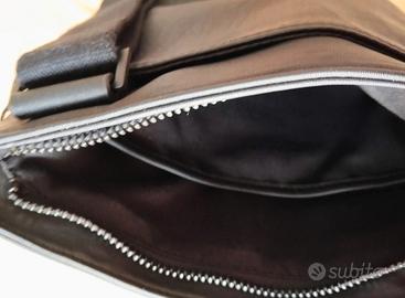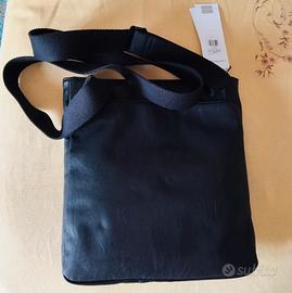 In ecopelle nera, tracolla regolabile e scomparti interni