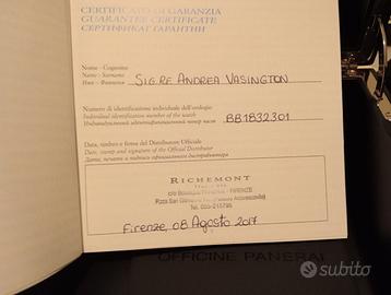 Vendo Panerai Luminor Marina 2017 acquistato in Boutique Panerai Firenze. Completo di tutto, scatola, contro scatola, garanzia, ricevuta, 3 cinturini. Vendo revisionato e lucidato.NO PERMUTE.