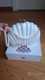 Originale edizione limitata della Maison, vip gift serie Indipendence day, resa celebre dalla "nostra" Ferragni che la indossava in modo sporty e informale. La lunga catena bianco/oro caratteristica del marchio la rendono un accessorio young, ma la mini catena in perle consente di indossarla a mano ed è perfetta per outfit importanti ed elegantissimi. Io la preferivo a mano semplicemente come clutch... completa di ogni sua parte, incluso il cartoncino gift di negozio e la dust bag. Prezzo più basso del web perché già indossata, ma non trattabile: non presenta nessun segno di usura né difetti; è in perfetto stato
