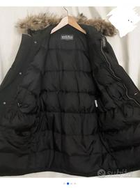 Woolrich..Caldissimo lungo giaccone ICONICO nero con cappuccio adornato da pelliccia .Calda trapunta interna, garantisce calore contro il freddo