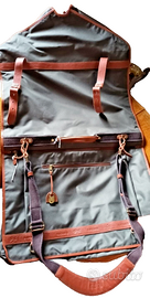 Trasformabile in tela e pelle bovina conciata al vegetale con manico e tracolle; può essere portato a mano, oppure indossato a spalla. Disegnata e realizzata in Italia dai maestri artigiani, della filiera lunga 30 km, de Il Bisonte. Tasca frontale a Cerniera con doppi cursori.