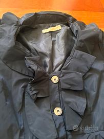 Impermeabile Artigli Blu Navy – Design Romantico e Glamour Vendo splendido impermeabile blu navy firmato Artigli, un capo unico che si distingue per il suo design femminile e i dettagli ricercati. Non è il solito soprabito: le forme morbide e i volumi studiati lo rendono un vero pezzo forte per il guardaroba primaverile o autunnale. Punti di forza e Dettagli di Stile: • Brand: Artigli. • Colore: Blu Navy (scuro elegante). • Taglia e Vestibilità: L'etichetta riporta taglia 46, ma la vestibilità è una 42 - 44 - 46. È perfetto per chi cerca un fit comodo ma sagomato nei punti giusti. • Collo Scenografico: Il collo non è classico, ma presenta ampi dettagli "svolazzanti" e mossi che creano un effetto ruches molto chic. • Maniche Arricciate: Le maniche presentano un design a palloncino con arricciature che donano movimento e un tocco bon-ton. • Chiusura: Bottoni frontali a scomparsa per una linea pulita che lascia spazio ai dettagli del collo e delle maniche. • Tessuto: Idrorepellente, leggero e di ottima fattura, tipico dello stile Artigli.