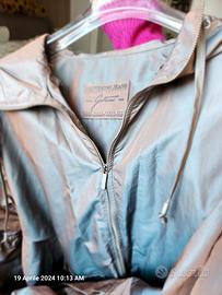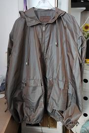 Impermeabile "Gattinoni". Taglia unica. Ovviamente con cappuccio. Ha la coulisse nel fondo, e a metà braccio e nei polsi. presenta 2 enormi tasconi sul davanti. Cerniera per tutta la sua lunghezza con marchio inciso. Logo posteriore in Velluto. Colore molto particolare Cangiante(dal verde al Viola) a seconda di come batte la luce! comprato, ma mai utilizzato perché mi è scomodo(personalmente) . Non presenta ( veramente!) alcun difetto. Tenuto in ottime condizioni.