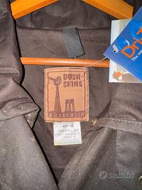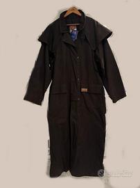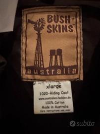 Impermeabile giacca australiana Bush-skins, nuovo mai indossato, lungo, cappotto da equitazione cerato dalla struttura robusta con mantellina cucita sulle spalle, spacco posteriore, unisex, materiale: tela cerata pesante Dri-tec, colore marrone scuro, 100% cotone impermeabile., taglia X large.