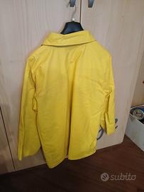 impermeabile giallo di Roberta Di Camerino ben tenuto, con 2 tasche capienti e tasca interna cn velcro, cerniera robusta, ben fatto e ben cucito, made in italy, taglia L.interno imbottito poliestere, esternoPVC idrorepellente.