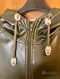 Come da foto vendo giacca lunga con cappuccio, colore verde oliva scuro. Materiale robusto e lucido. Usato pochissimo, codizioni pari al nuovo. Piccole macchie nere come mostrato in foto sono le uniche imperfezioni. Vendo per cambio taglia. Ritiro a carico dell’acquirente o spedizione tracciata con Tutto Subito. Massima serietà, no perditempo.
