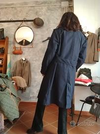 Impermeabile sartoriale Aviazione italiana in perfette condizioni, colore blu scuro, taglio doppio petto con spacco posteriore e martingala, completamente foderato e in interni perfetti, non c’è etichetta ma oli tessuto sembra cotone pesante o misto lana, comunque impermeabile. taglia 50 ma consiglio di attenersi alle misure cm: