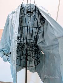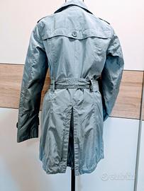 Splendido impermeabile leggero (giacca a vento) caratterizzato da un particolare colore grigio/ azzurro perla/argento a specchio, che dona una lucentezza moderna ed elegante a seconda della luce. Un capo versatile, perfetto per le mezze stagioni e per dare un tocco di luce alle giornate piovose!