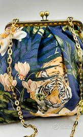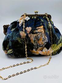 Cerchi un accessorio che parli di te, della tua forza e del tuo amore per il pezzo unico? Lasciati conquistare da questa clutch artigianale, dove l'eleganza del velluto incontra il fascino selvaggio della natura.