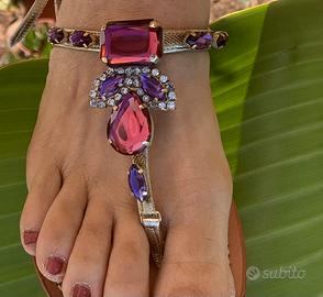Sandali artigianali infradito di cuoio con autentici Swarovski viola bellissimi luminosi numero 37 mai usate.