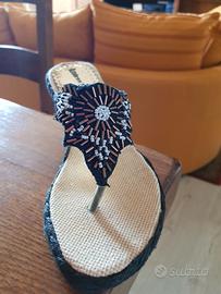 infradito nere con lavorazione gioiello praticamente nuove. messe 1 volta. zeppa mm 7 numero 36. Marca Andrea Morelli