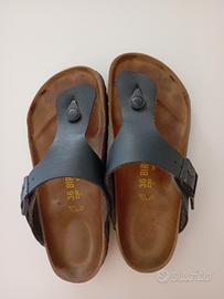 Sandalo infradito Birkenstock originale.Le fibbie sono in pelle di colore nero
